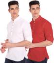Pack of 2 Men Solid Pure Cotton Straight Kurta (Multicolor)