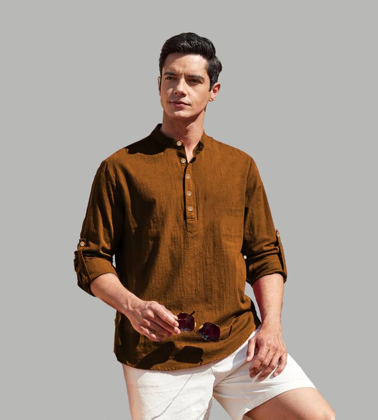 Men Solid Cotton Blend Straight Kurta (Gold)