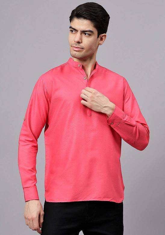 Vida Loca Men Solid Cotton Blend Straight Kurta (Pink)