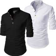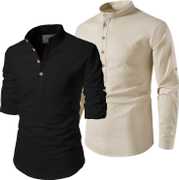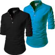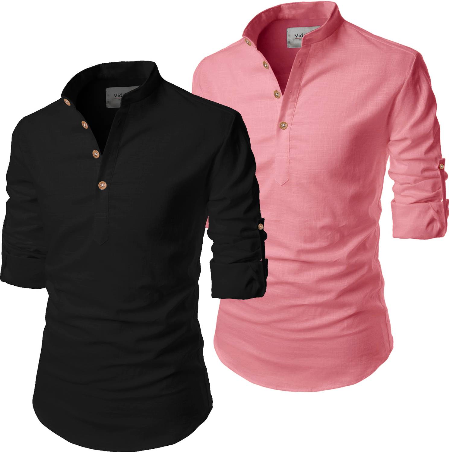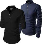 Pack of 2 Men Solid Pure Cotton Pathani Kurta (Black, Pink)