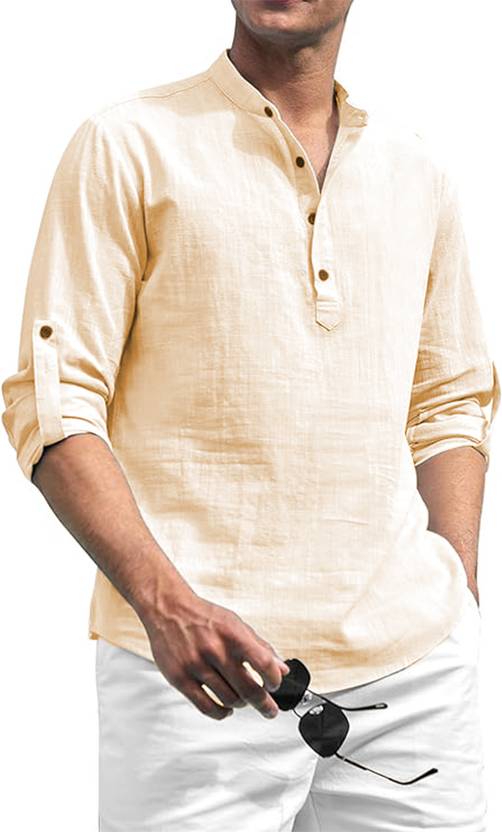 Vida Loca Men Solid Cotton Blend Straight Kurta  (Beige)
