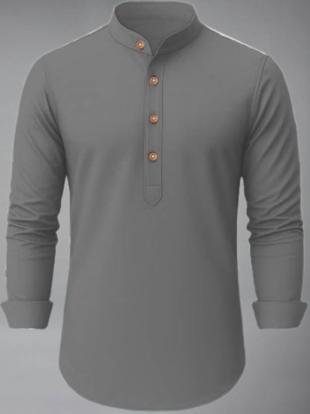 Men Solid Cotton Blend Straight Kurta (Grey)