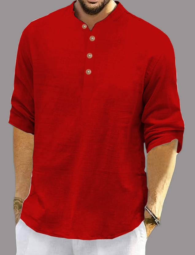 Univibe Men Solid Pure Cotton Straight Kurta (Red)