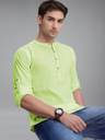 FireFish Men Solid Cotton Blend A-line Kurta (Green)