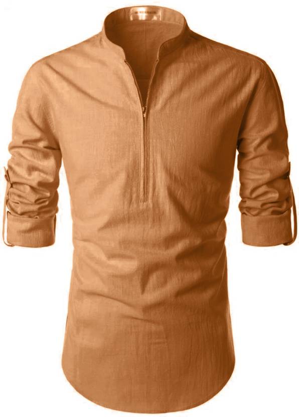 Men Solid Pure Cotton Straight Kurta (Beige)