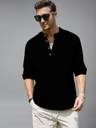 Univibe Men Solid Cotton Blend Straight Kurta (Black)