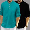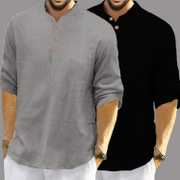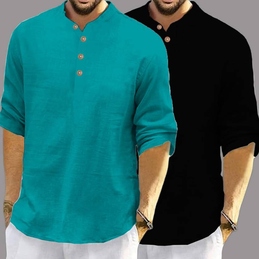 This pure cotton short kurta is perfect for men who value style and comfort. Its versatile design makes it ideal for any occasion—festivals, parties, or casual outings. Product Details 📋 👨🦰 Gender: Men 🎨 Pattern: Solid 🧵 Design Type: Plain 🔘 Closure: Button 👕 Sleeve: Full Sleeve (Roll-Up Option) ⬆️ Waist Rise: Mid-Rise 🪡 Collar: Mandarin/Chinese ✂️ Hemline: Curved 🌿 Fabric: Cotton Blend 📏 Product Length: Short 📦 Pack of: 2 Material & Care 🧺 Fabric: Cotton Blend Wash: Suitable for hand wash and machine wash. How to Style 🎯 Pair it with dark-wash denim or linen trousers for a casual look. Dress it up with a pair of churidar or slim-fit pants for festive occasions. Add leather sandals or loafers and a wristwatch for a classy finish. Roll up the sleeves for a relaxed vibe during daytime events. This short kurta seamlessly blends traditional elegance with modern styling, making it a wardrobe essential for every man! 👌"