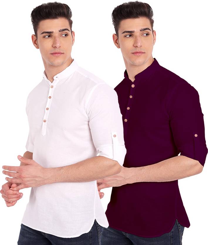 Univibe Pack of 2 Men Solid Pure Cotton Straight Kurta (Purple)