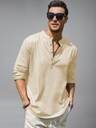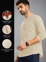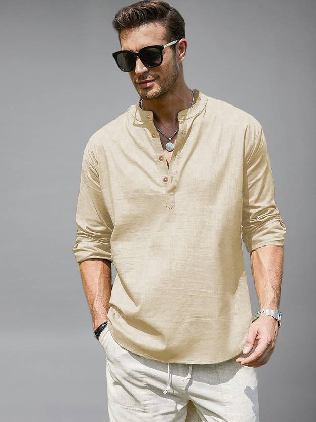 Univibe Men Solid Cotton Blend Straight Kurta (Beige)