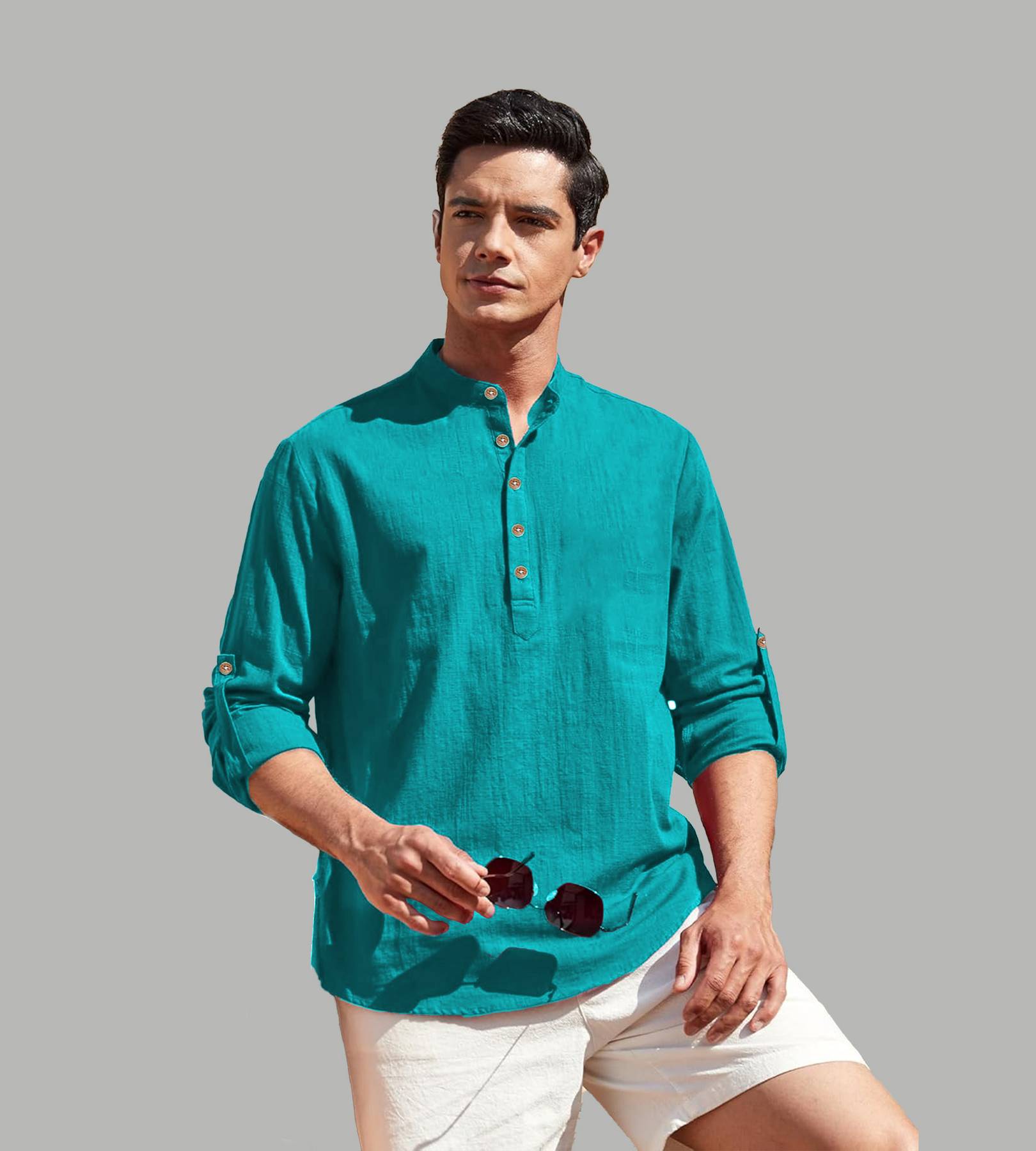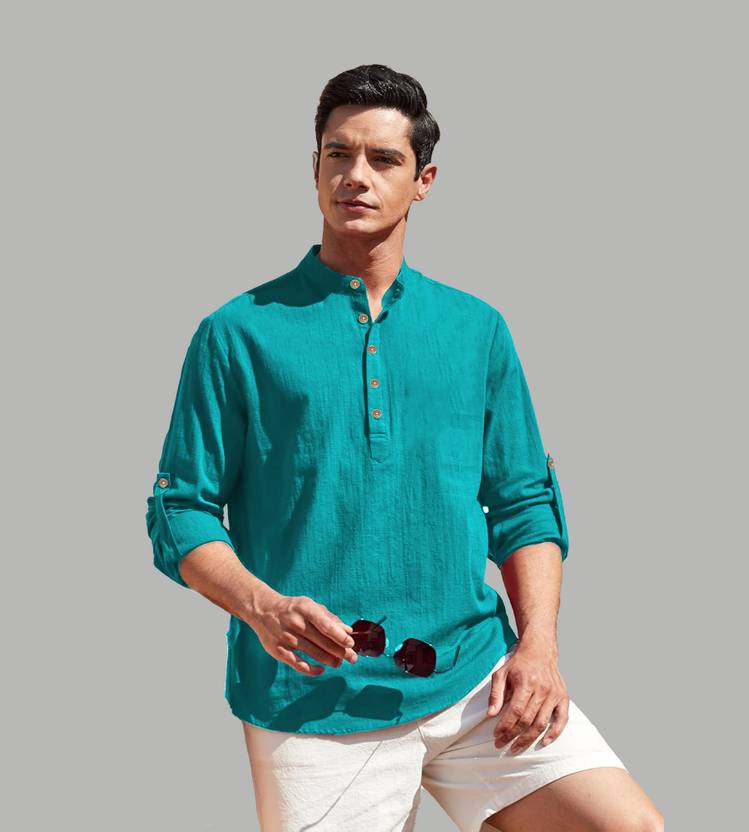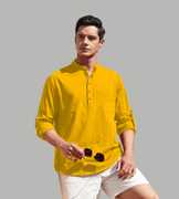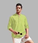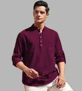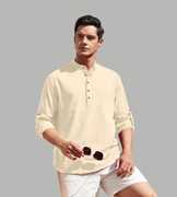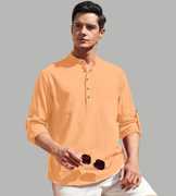 This pure cotton beige short kurta is perfect for men who value style and comfort. Its versatile design makes it ideal for any occasion—festivals, parties, or casual outings. Product Details ?? ????? Gender: Men ?? Pattern: Solid ?? Design Type: Plain ?? Closure: Button ?? Sleeve: Full Sleeve (Roll-Up Option) ?? Waist Rise: Mid-Rise ?? Collar: Mandarin/Chinese ?? Hemline: Curved ?? Fabric: Pure Cotton ?? Product Length: Short ?? Pack of: 1 Material & Care ?? Fabric: 100% Cotton Wash: Suitable for hand wash and machine wash. How to Style ?? Pair it with dark-wash denim or linen trousers for a casual look. Dress it up with a pair of churidar or slim-fit pants for festive occasions. Add leather sandals or loafers and a wristwatch for a classy finish. Roll up the sleeves for a relaxed vibe during daytime events. This short kurta seamlessly blends traditional elegance with modern styling, making it a wardrobe essential for every man! ??