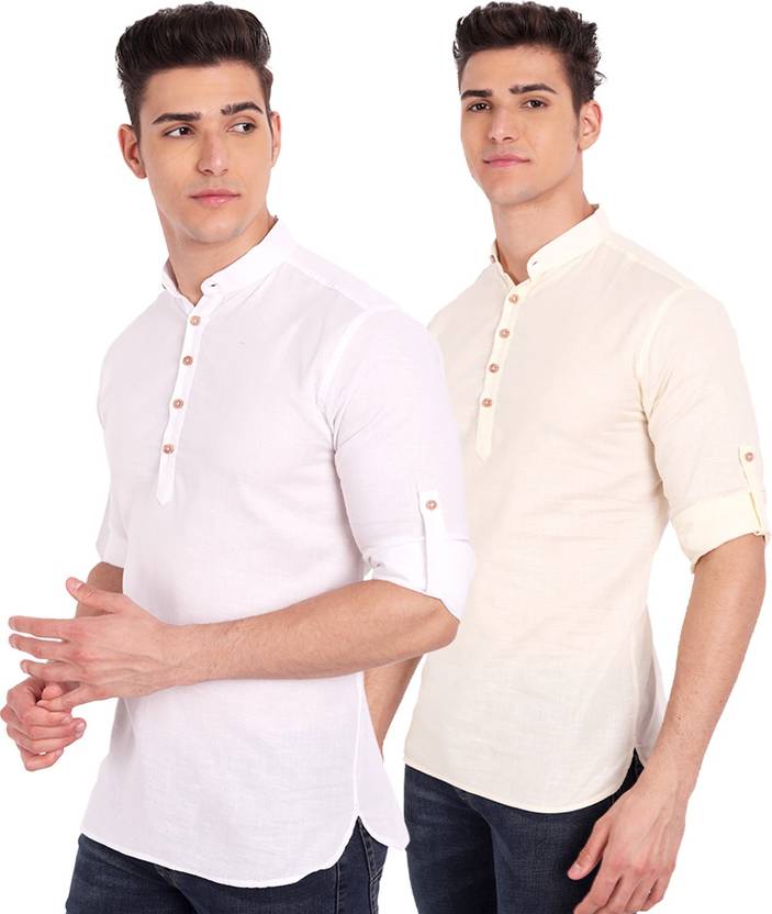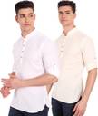 Univibe Pack of 2 Men Solid Pure Cotton Straight Kurta (Beige)