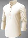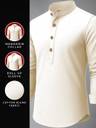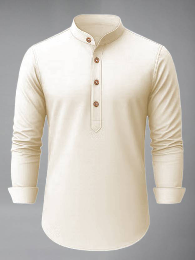 Men Solid Cotton Blend Straight Kurta (Beige)
