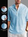 Men Solid Cotton Blend Straight Kurta (Light Blue)
