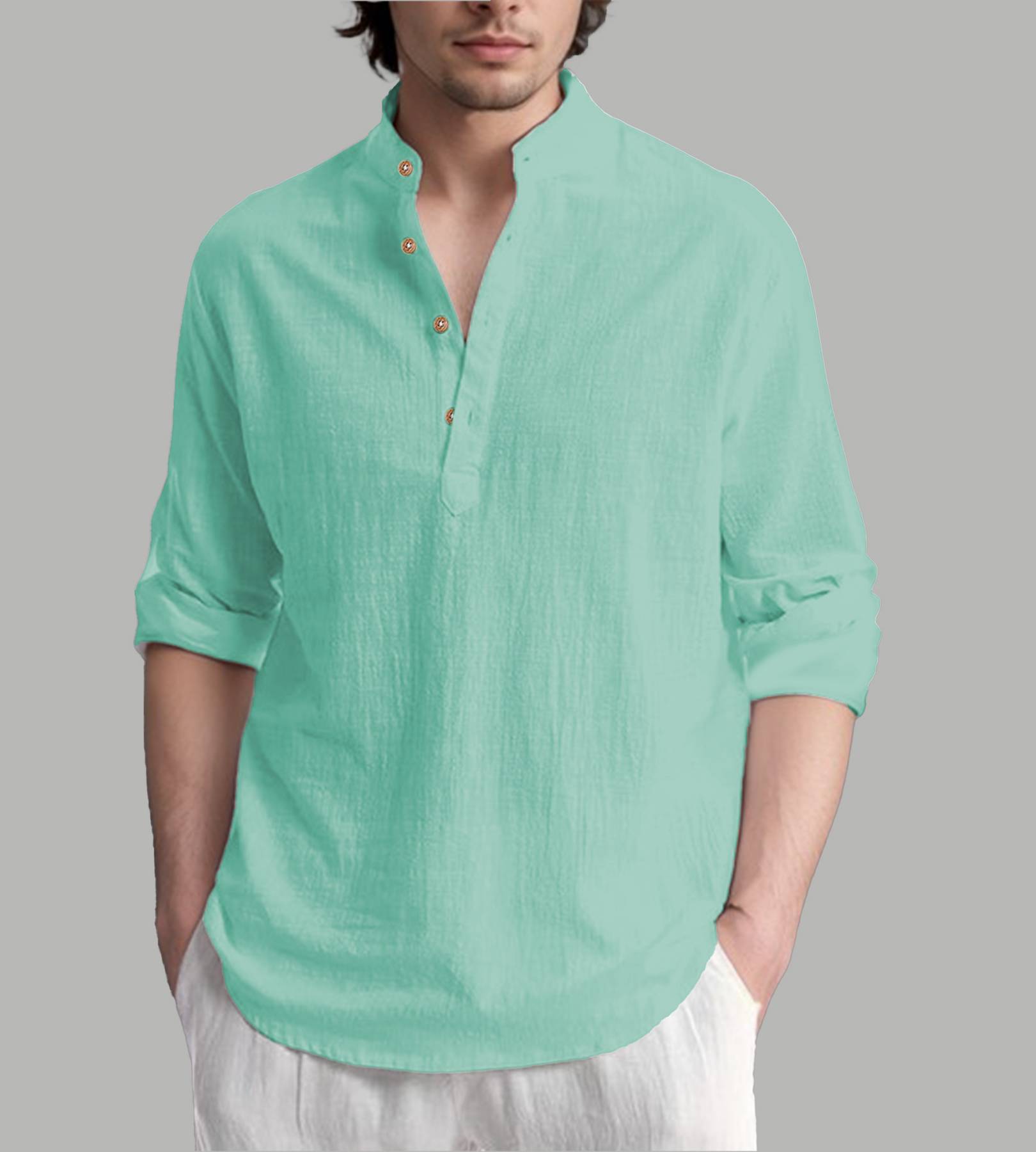 This pure cotton beige short kurta is perfect for men who value style and comfort. Its versatile design makes it ideal for any occasionโ€”festivals, parties, or casual outings. Product Details ?? ????? Gender: Men ?? Pattern: Solid ?? Design Type: Plain ?? Closure: Button ?? Sleeve: Full Sleeve (Roll-Up Option) ?? Waist Rise: Mid-Rise ?? Collar: Mandarin/Chinese ?? Hemline: Curved ?? Fabric: Pure Cotton ?? Product Length: Short ?? Pack of: 1 Material & Care ?? Fabric: 100% Cotton Wash: Suitable for hand wash and machine wash. How to Style ?? Pair it with dark-wash denim or linen trousers for a casual look. Dress it up with a pair of churidar or slim-fit pants for festive occasions. Add leather sandals or loafers and a wristwatch for a classy finish. Roll up the sleeves for a relaxed vibe during daytime events. This short kurta seamlessly blends traditional elegance with modern styling, making it a wardrobe essential for every man! ??