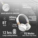 Unix Wireless Headphones I 12 Hrs PlaytimeI 40MM Drivers I Foldable I Built in Mic Bluetooth (White, On the Ear)