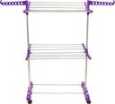 Unizone Steel, Aluminium, Plastic Floor Cloth Dryer Stand SS Premium Compact Space Saving Foldable - US2002 Single Poll (2 Tier)