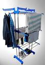 The Unizone Premium Double Pole 3-Tier Cloth Dryer Stand is a must-have for every home, offering durability, ample drying space, and a space-saving design for cloths drying. This Cloth Dryer Stand is made with high-quality stainless steel rods and durable plastic joints, its double pole structure ensures stability and high weight-bearing capacity. This cloth dryer stand has 3-tier design features 8 rods per tier, allowing efficient drying of clothes like shirts, sarees, towels, and bedsheets. The foldable side mesh frames of this cloth dryer stand enable compact storage, making it perfect for small spaces. Its 4 rotatable side wings come with 7 dedicated hanger slots each, providing wrinkle-free drying. 8 small hooks per tier are ideal for baby clothes, socks, and undergarments, while the bottom shelf with 2 pipes is perfect for drying shoes and slippers. Equipped with 4 durable wheels, it allows easy mobility indoors and outdoors. The rust-resistant stainless steel rods ensure durability, making it suitable for all weather conditions. Whether for indoor drying during monsoons or outdoor sun-drying, this stand meets every household’s laundry needs. Why choose Unizone? It offers a sturdy build, large drying capacity, foldable space-saving design, rotating wings, extra hooks, shoe drying pipes, smooth mobility, and rust-proof durability, all while complementing modern home aesthetics. Perfect for working professionals, homemakers, or students, this stand ensures an effortless laundry drying experience.