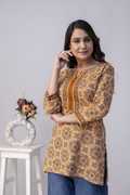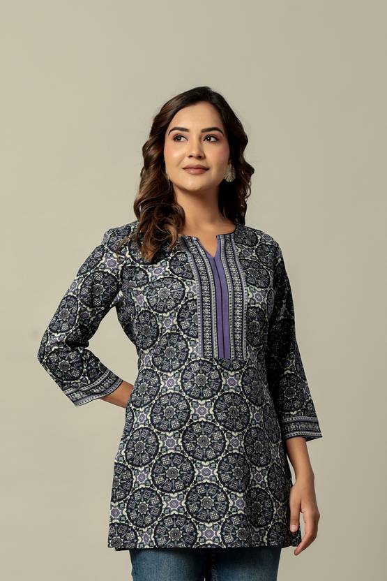 Elevate your wardrobe with this stylish 100% rayon fabric short top top, featuring 3/4th sleeves and a round collar. Inspired by global and Indian crafts, these tops are designed in a variety of printed- with a contemporary twist. Crafted with the utmost care to provide you the latest fashion with comfort, this short top is made in natural, soft fabric that falls well and is comfortable to the skin. Style with slim pants or jeans and chunky earrings. Make a statement when you step in for work or for a casual day out with your friends. The Top combines Western with the fashion of today and makes you stand out among others when you adorn it. Whether paired with jeans, leggings, or a skirt, this versatile tunic top effortlessly adapts to your style needs. Elevate your wardrobe with a piece that celebrates timeless beauty and modern sophistication. Embrace effortless grace and make a statement with this must-have printed short top. making it ideal for both everyday wear and special occasions. Whether you're dressing up for a casual outing or embracing traditional festivities, this versatile top ensures you look chic and feel at ease. Add a touch of effortless style to your wardrobe with this beautiful and functional piece. The lightweight, breathable fabric ensures all-day comfort, while the versatile style makes it ideal for both casual outings and dressier occasions.
