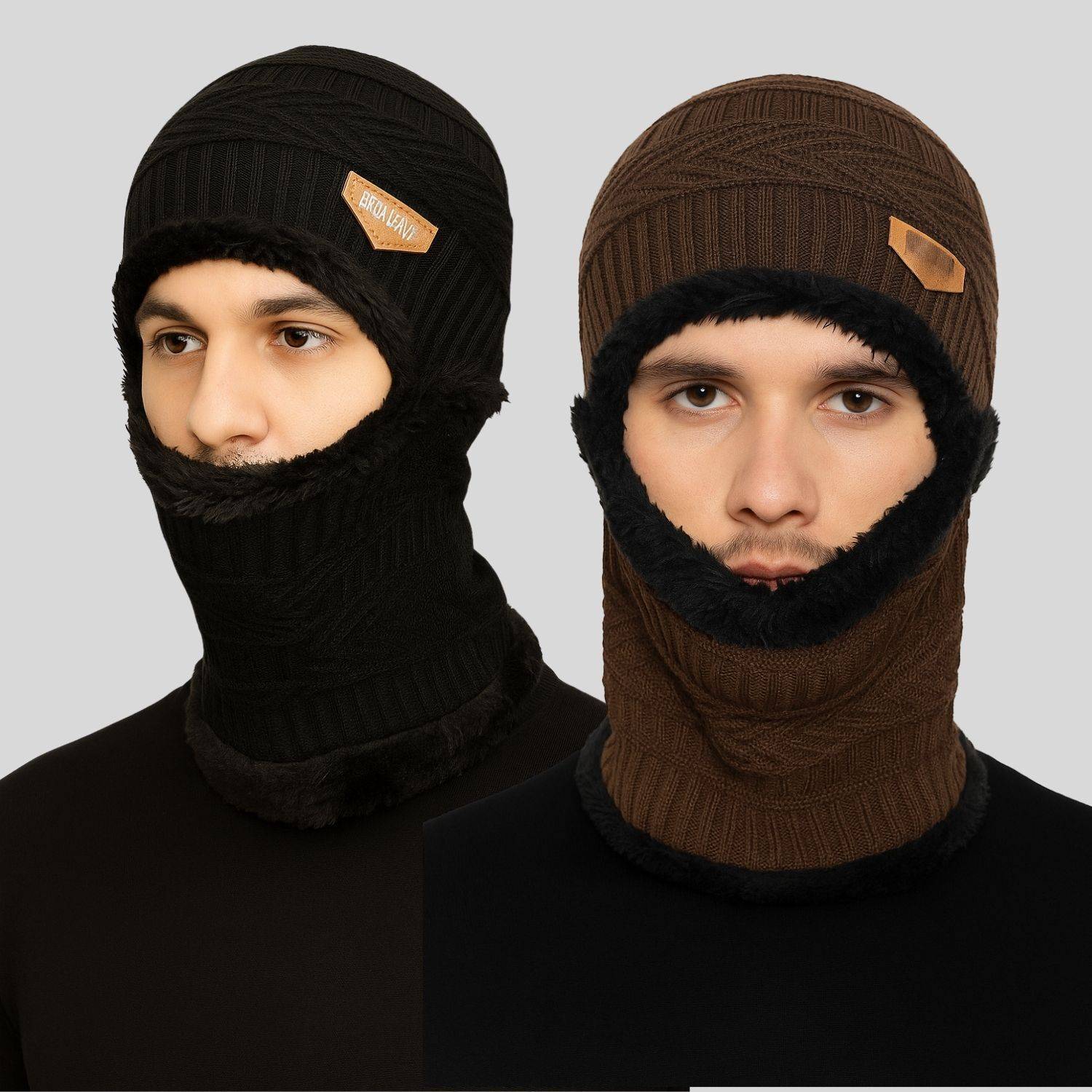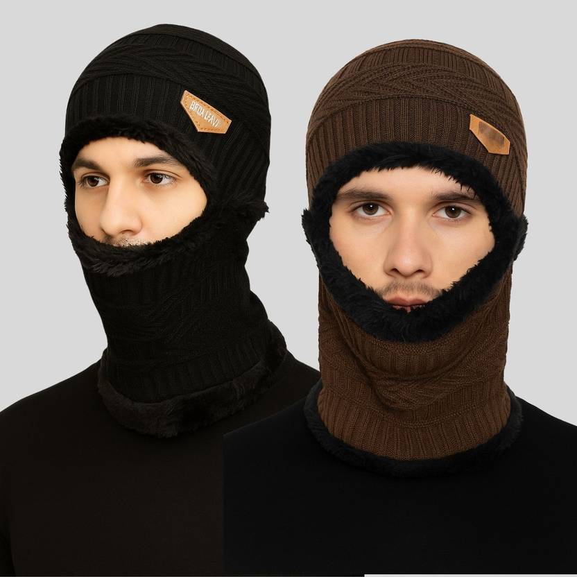 Stay fully protected and stylish this winter with this Combo Pack of 2 Men's Woollen Monkey Caps, designed with a premium self-design knitted pattern that adds a modern and bold winter look. Made from high-quality woollen fabric, these caps provide maximum warmth, complete face and neck coverage, and excellent comfit during cold weather.Each cap features a soft inner fur lining that feels gentle on the skin while delivering superior insulation. The regular-fit stretchable design ensures a secure and comfortable fit for all-day wear, making them perfect for biking, travel, outdoor work, trekking, daily use, and extreme winter conditions.This combo includes two versatile winter colors that pair effortlessly with all outfits. Warm, breathable, and stylish - this is the ultimate winter essential daily man needs.
