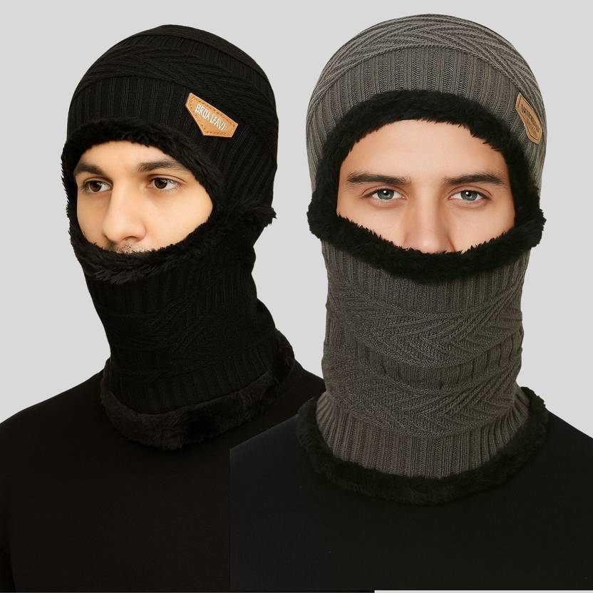 Stay fully protected and stylish this winter with this Combo Pack of 2 Men's Woollen Monkey Caps, designed with a premium self-design knitted pattern that adds a modern and bold winter look. Made from high-quality woollen fabric, these caps provide maximum warmth, complete face and neck coverage, and excellent comfit during cold weather.Each cap features a soft inner fur lining that feels gentle on the skin while delivering superior insulation. The regular-fit stretchable design ensures a secure and comfortable fit for all-day wear, making them perfect for biking, travel, outdoor work, trekking, daily use, and extreme winter conditions.This combo includes two versatile winter colors that pair effortlessly with all outfits. Warm, breathable, and stylish - this is the ultimate winter essential daily man needs.