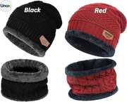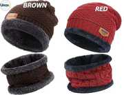 Brown&Red Winter Cap Woolen Beanie Neck Warmer Muffler For Men Women