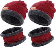 WinterBeanie Hats Scarf Set Warm Knit Hats Skull Cap Neck Warmer with Thick FleeceLined Winter Hat & Scarf for Men Women