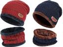 WinterBeanie Hats Scarf Set Warm Knit Hats Skull Cap Neck Warmer with Thick FleeceLined Winter Hat & Scarf for Men Women