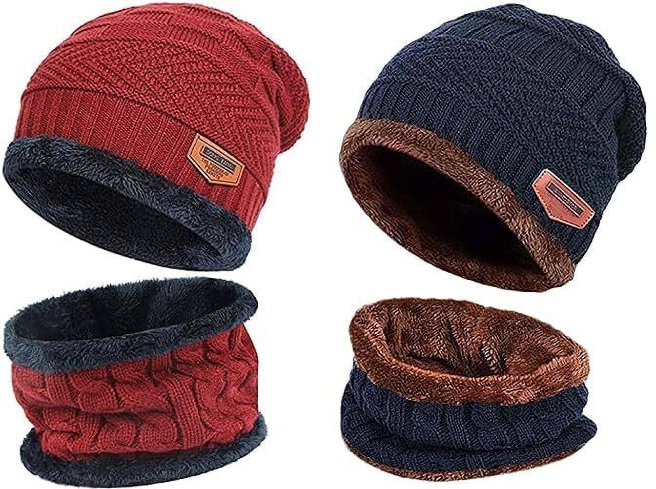 "2-PiecesWinter Beanie Hat Scarf Set Warm Knit Hat Thick Fleece Lined Winter Hat &Scarf for Men Women