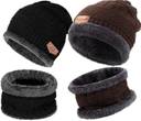 WinterBeanie Hats Scarf Set Warm Knit Hats Skull Cap Neck Warmer with Thick FleeceLined Winter Hat & Scarf for Men Women