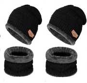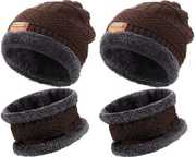 Black&Brown Winter Cap Woolen Beanie Neck Warmer Muffler For Men Women