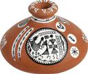 This pot is made of terracotta, brought to you from Uttar Pradesh and decorated with the Warli art, native to the tribals of Maharashtra. It is handpainted with acrylic colours.The minimal design on this pot will give a classy appeal to your room.
