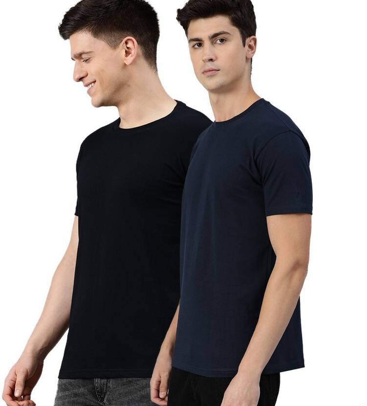 UNSULLY Pack of 2 Men Solid Round Neck Pure Cotton Blue, Black T-Shirt