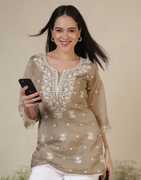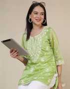 This comfortable Chikankari kurta from Uparna is versatile to wear to a special event or wear jeans, pant, palazzo, trouser for casual, festive & party look. Wear this kurti with elegant heels for a fashion-forward look.