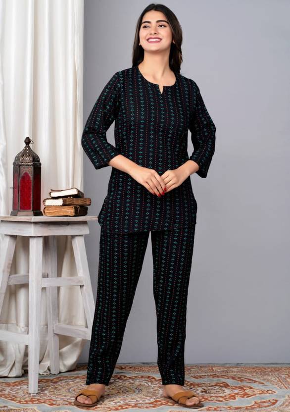 UPEA Women Printed Black Night Suit Set