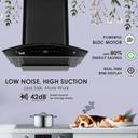 This chimney has a Revolutionary Silent BLDC Motor which provides Upto 80% Energy Saving & 32% Less Noise. The chimney boasts a robust copper motor, featuring impressive suction capabilities, extended longevity, reduced power consumption, and minimal noise generation.
