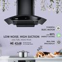 This chimney has a Revolutionary Silent BLDC Motor which provides Upto 80% Energy Saving & 32% Less Noise. The chimney boasts a robust copper motor, featuring impressive suction capabilities, extended longevity, reduced power consumption, and minimal noise generation.