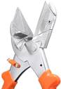 Designed for use on timber and cardboard, plastic formwork fillet. Designed to cut trunking, Article plastic, batten, plastic pipe or any plastic products. To complete all kinds of arbitrary shear: 45°, 60°, 75°, 90°, 105°, 120°. Able to adjust the Angle from 45°to 135°on left and right. Ergonomic design handle, comfortable to hold. Not easy to rust. High strength and hardness. Easy to use. Durable and practical.