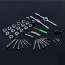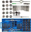 40-Piece Premium Metric Tap and Die Set is the perfect choice for your hand threading jobs at home, garage and shop. It can be used to either cut new threads or chase existing threads. This set is made from highly durable GCr15 bearing steel, and cuts through a wide range of metal pipes and rods including carbon steel, cast iron, stainless steel, aluminum, brass, copper and much more. All the cutting teeth are professionally CNC (computer numerical controlled) machined and heat treated to Rockwell hardness 60 HRC for providing aggressive, clean and precise threading results. The taps and dies also feature a tapered design, allowing an easier start and preventing over threading. Set Includes: (17) Taps; (17) Dies; (1) Long Handle Adjustable Tap Wrench; (1) T-Handle Tap Wrench; (1) Adjustable Die Wrench; (1) Mini 1/8” Flat Screwdriver; (1) Thread Pitch Gauge; (1) Heavy Duty Storage Case; Tap and Die Sizes: Coarse Thread: 3 x 0.5, 3 x 0.6, 4 x 0.7, 4 x 0.75, 5 x 0.8, 5 x 0.9, 6 x 1.0, 7 x 1.0, 8 x 1.25, 10 x 1.5, 12 x 1.75; Fine Thread: 6 x 0.75, 7 x 0.75, 8 x 1.0, 10 x 1.25, 12 x 1.5; Pipe Thread (NPT): 1/8 NPT 27;