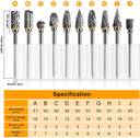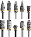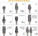 uptodatetools Carbide Rotary Burr Set 10pcs, Carving Burr Bits 3mm Shank 6mm Bit for Wood & Stone Carving, Steel Metal Working