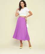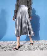 Look high on style, by wearing this pair of pleated satin skirt. Featuring an elasticated waistband, this trendy and uber chic piece gives you a perfect feminine charm. The oh-so-trendy silhouette is bound to flatter any body type. If that's not enough it’s also available in plus sizes. You can pair this up with blouse top and high heels or flats to look like a stunner!