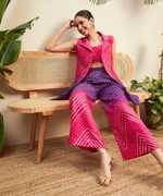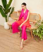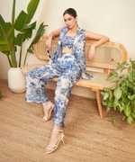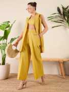 Make a statement in this Three Piece Co-ord Set. Each piece is made from 100% linen making it perfect and super breathable for Indian weather. The full length trousers feature a wide waistband for a super comfortable fit. The waistband is smooth in the front and elasticated in the back for maximum comfort. The inner bralette comes with pads so go bra free with ease! The jacket adds an elevated look. This set is super versatile - wear it with or without the jacket or change the bralette inside for a whole new look.