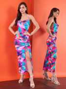 This bodycon dress is sure to make heads turn! With a cowl neck detailing, thin straps and the perfect midi length, it is oh so trendy. The high slit is adjustable so go as high or low as you want! The drawstring allows you to adjust the fit, The silhouette of the dress is very flattering. No underwear lines will show in this dress and it is super comfortable and easy to wear. It is a basic dress which will become your wardrobe staple and can be worn from day to night. Made from super soft and stretchable fabric, this drawstring bodycon dress is sure to fetch you loads of compliments. Its quick drying fabric helps avoid sweat patches plus it is made of crease-free fabric thus making it travel friendly.