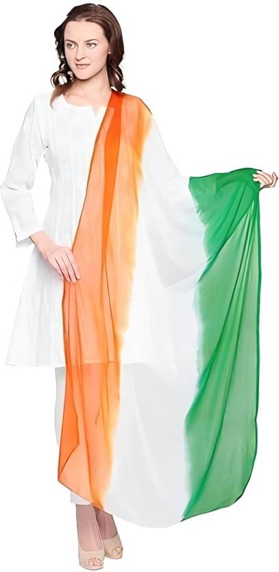 Chiffon Fabric Dupatta, Tricolour Tiranga Chunni, 2 Metres, Republic/Independence Day Special, Pack 1
