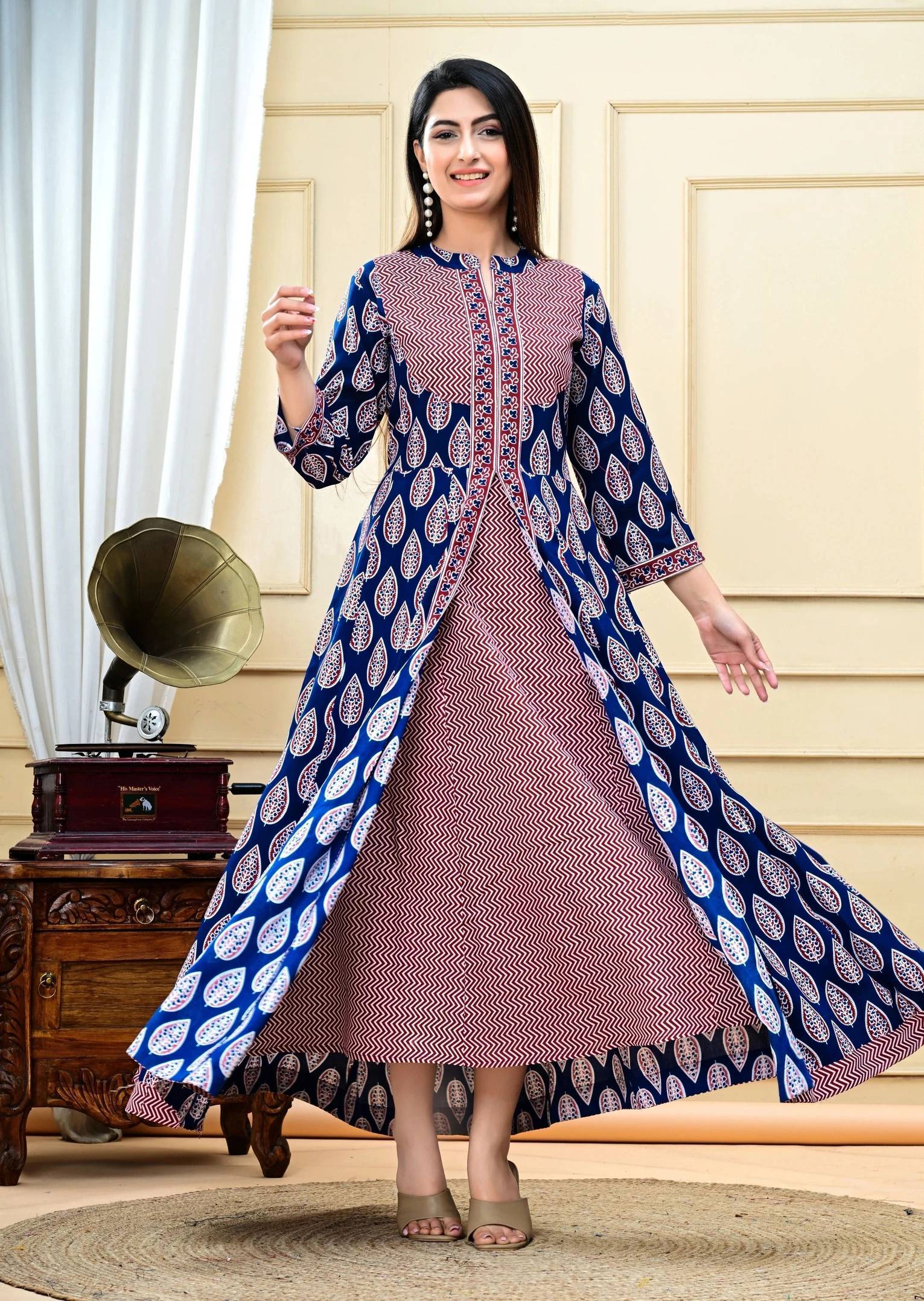 urami Anarkali Gown (Blue, Red)