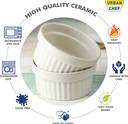 Urban Chef Ceramic Ramekin Bowls 225 Ml for Baking or Serving Puddings, Custards, Cup Cake Muffin Souffle, Creme Brulee, Deserts,Berries, Chutneys and Dips – Microwave /Oven/ OTG / Dishwasher Safe Ramekin DishA bowl is an essential kitchen and dining item, valued for its versatility, convenience, and style. Whether you're preparing ingredients, mixing batters, serving meals, or enjoying a quick snack, a bowl serves countless everyday functions. Available in a range of materials including ceramic, glass, stainless steel, plastic, and melamine, bowls are crafted to suit varied needs—from elegant dining to rugged kitchen prep. Many modern bowls are microwave-safe, dishwasher-safe, and food-grade certified, ensuring ease of use and safety. Their stackable design saves cabinet space, while their smooth edges and sturdy construction ensure comfortable handling. Ideal for soups, salads, curries, cereals, desserts, and snacks, bowls are indispensable for any meal or occasion. Stylishly designed with sleek finishes, they enhance your table setting and complement any dinnerware.