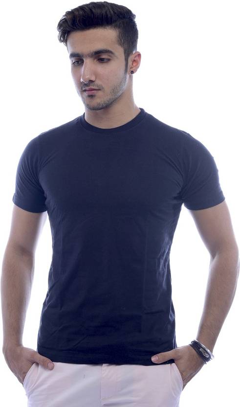 Urban Flux Plain Black Fitted Men Solid Round Neck Cotton Blend Black T-Shirt