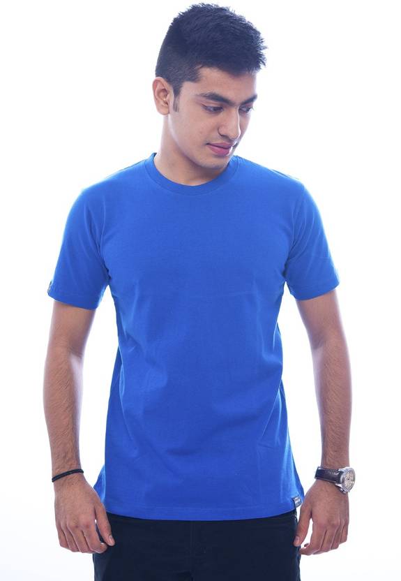 Urban Flux Plain Blue Fitted Men Solid Round Neck Cotton Blend Blue T-Shirt