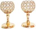 Urban Hamlet Set of 2 Crystal Beaded Candle Holders | Elegant Golden T-Light Stand Iron Tealight Holder Set  (Gold, Pack of 2)