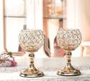 • Set of 2 Crystal Beaded Candle Holders | Elegant Golden T-Light Stand