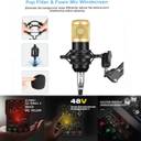 Key Features | - BM-800 Microphone Bundle comes complete with a ton of essential accessories, including condenser microphone, 48v Phantom Power Supply adjustable suspension scissor arm stand, table mounting clamp, shock mount, pop filter, 3.5mm male to XLR female cable, U-SHAPE microphone Audio adapter and instruction., It is fully compatible with Windows 7, Windows 8, Windows 10, Mac OS X computers, as well as several Linux distributions, an ideal mic to capture vocals, acoustic guitars, acoustic pianos and even strings as the condenser is able to take an accurate snapshot and capture all the subtleties and nuances inherent in these instruments bm800 mic for singing recording, The BM-800 microphone for pc ideal for mobile phone podcasting, podcasting, YouTube videos, voice recognition software, corporate videos and any production application that requires a simple yet professional voice-over microphone.